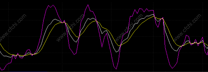 k线、D线与J线,三条曲线相比较,J线数值变化最快,又被称之为超快线,或称确认线。主要用来确认K线与D线所发出的买卖信号,作为辅助观察线。k线数值变化速度在三条曲线中属于中等,但与D线比起来速度稍快于D线,因此,K线又被称之为快线。D线在三条曲线中变化速度最慢,所以D线又被称之为慢线。如下图所示: