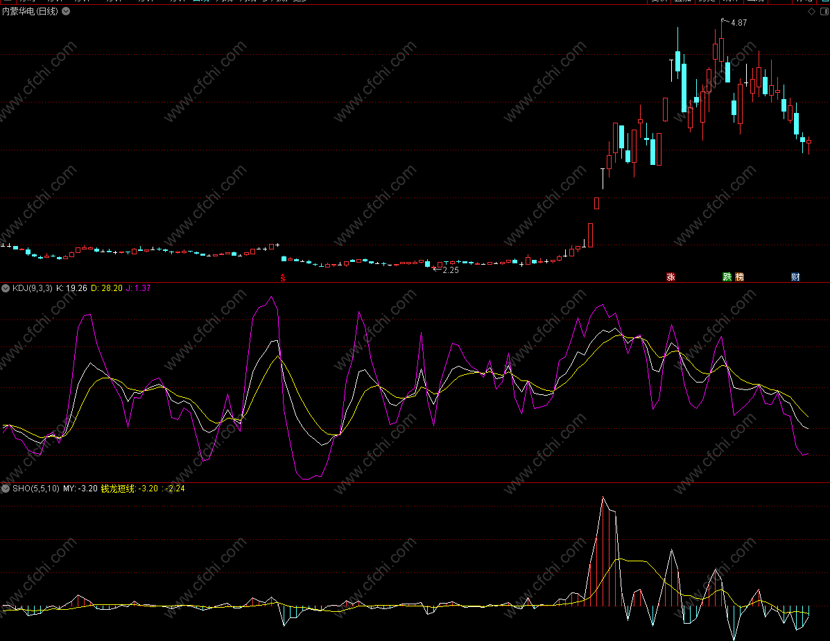 以内蒙古华电为案例,kdj 指标多次起伏出现买卖点,但是总体趋势下跌。