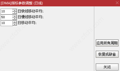 DMA指标根据个人用法不同,可以选择不同周期例如:日DMA指标、周DMA指标、月DMA指标年DMA指标以及分钟DMA指标等各种类型。经常被用于股市研判的是日DMA指标和周DMA指标。