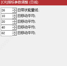 CR带状能量线指标参数:以日K为例,参数是:(26,10,20,40,62)