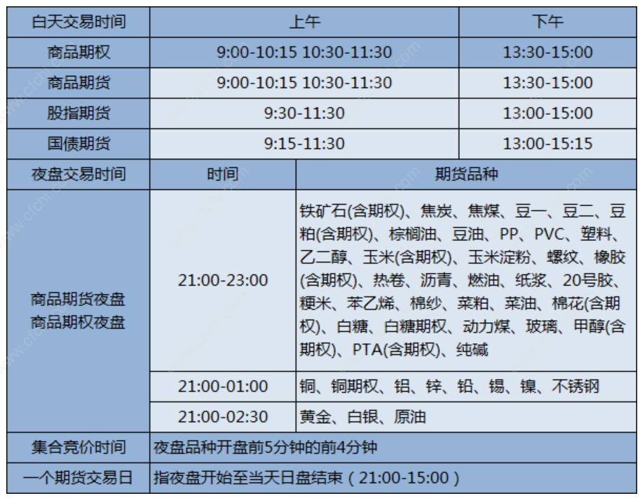 根据《沪深300股指期货合约》的规定,交易时间为“上午9: 25-11: 30,下午13: 00-15: 00”,最后交易日期为“上午9: 25-11: 30,下午13: 00-15: 00”。美国的期货指数市场是24小时交易,而台湾的则是早晚各增加15分钟。