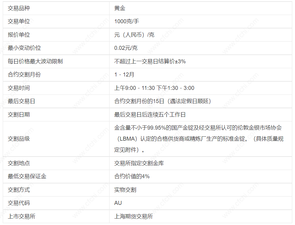 黄金期货标准合约如下图所示: