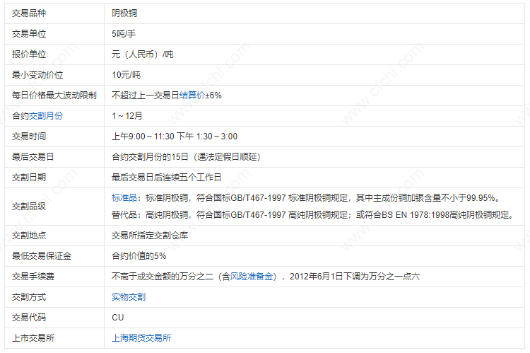 铜期货就是以铜作为标的物的期货品种,是在上海交易所上市的期货品种,交易代码---CU。