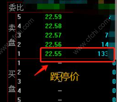 交易所规定,当天股票卖出的挂单价格不能低于跌停价。例如下图的某个股票,当天跌停价是22.55元,如果想在股票跌停的时候卖出该股票,则最低价格只能挂22.55元,如果低于22.55元,则申报无效,是不可能卖出股票的。