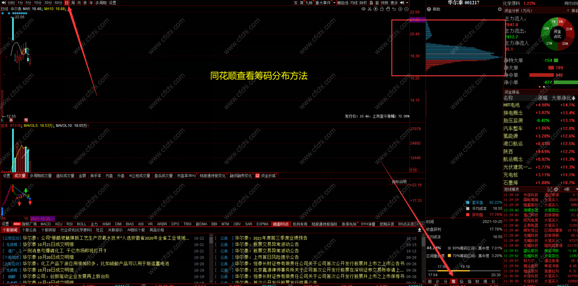 同花顺看筹码分布方式,以同花顺电脑端为例: