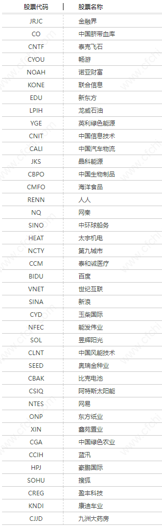 中国概念股一览表如下图所示: