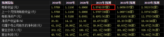 ①市盈率:目前它的股价为47.6元,预测2021年全年每股收益为1.5742元,市盈率=47.6元 / 1.5742元=约30.24。在20~30为正常,不难看出,目前股价有点偏高,不过更好的评价标准还要看其公司的规模和覆盖率。