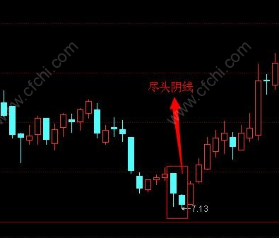(2)标准的尽头线在盘中出现的概率并不高,如果第二根K线的上下影线较长,但只要它的实体较短,且完全被第一根K线的影线完全所包容,也可以看作是“尽头线”。