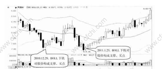 当股价在BOLL下轨位置获得支撑时,买点出现。