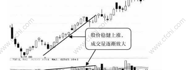 低位价升量增是指经过一段时间下跌后,在一个较低的价位上,随着股价稳健上涨.成交量也逐渐放大的形态。