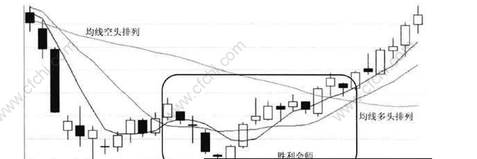 胜利会师是指短期、中期和长期均线由空头排列到逐渐聚拢、纠缠在一起,最后完成多头排列的过程。