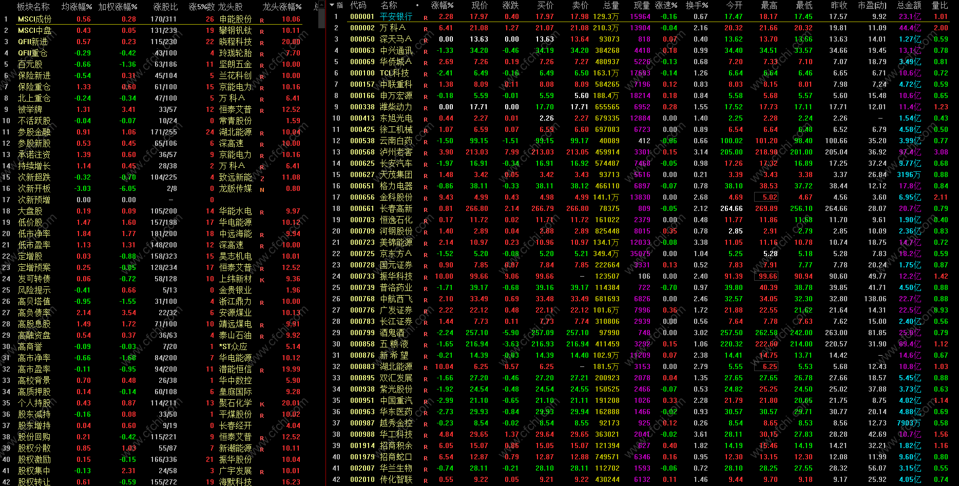 这个排版,左边是个股目录,点击板块,右边列出个股,非常方便。