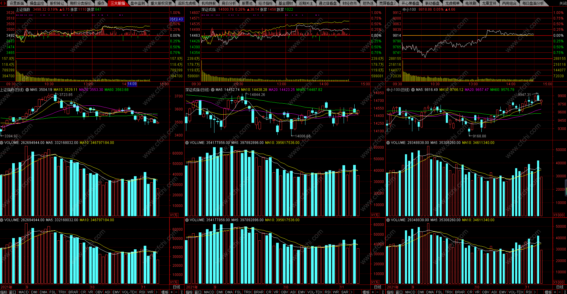 板块走强 三大股指探底回升 通达信看盘版面