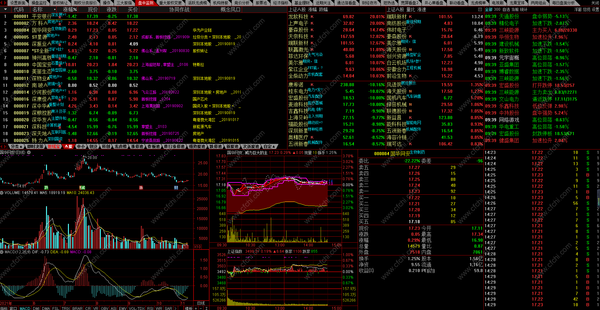 (板块走强 三大股指探底回升 通达信看盘版面)