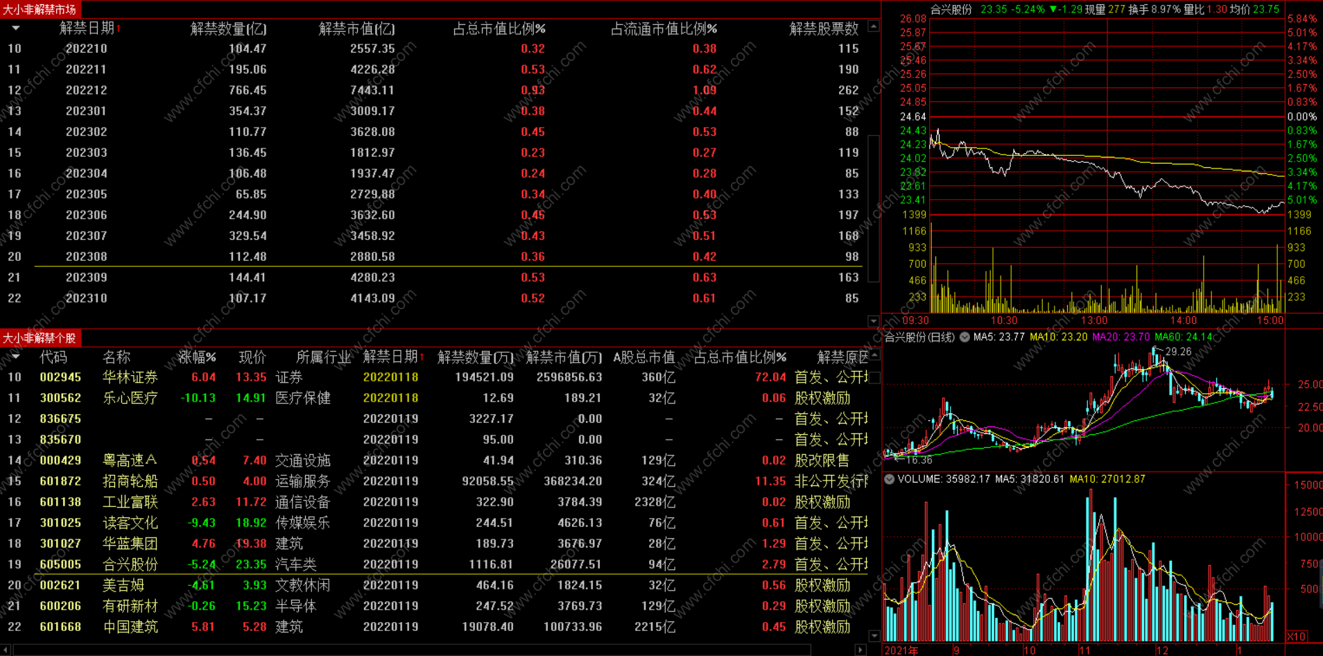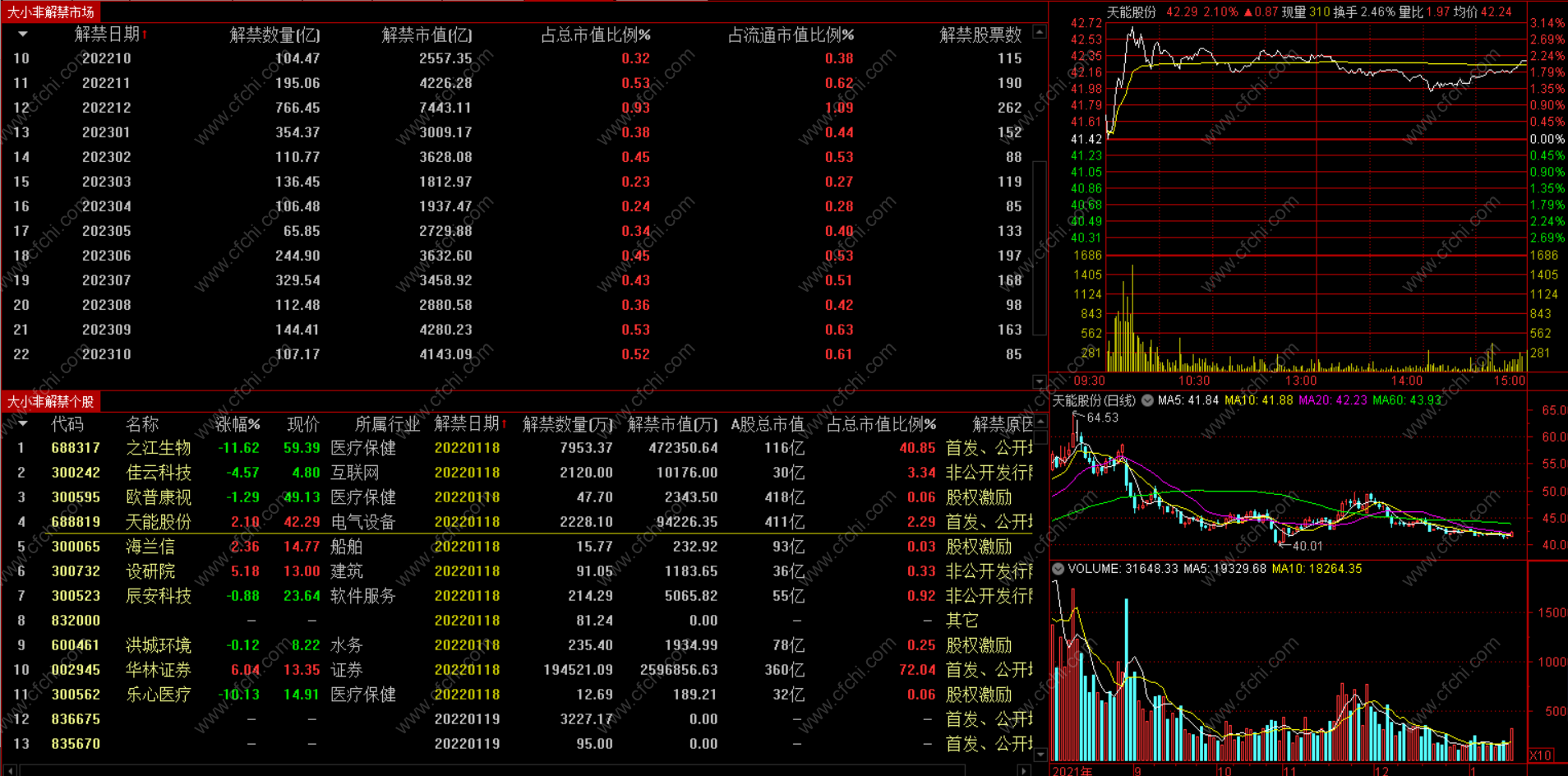 大小非解禁市场 解禁个股 一目了然 通达信看盘版面
