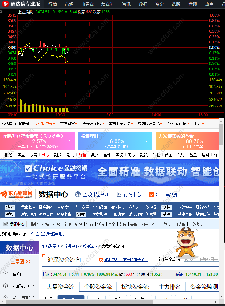 两个版面,一个看大盘,一个看个股.因TDX资金流的未尽完美,加入了其它外加网页资金链接.