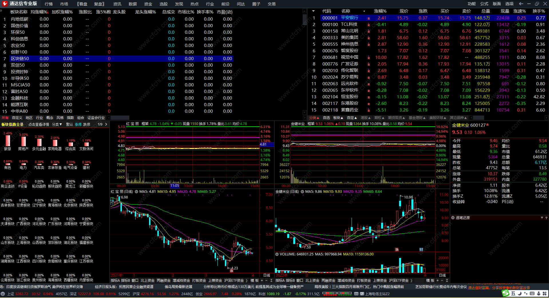 通达信仿金葵花看盘“热点”实用的看盘面板