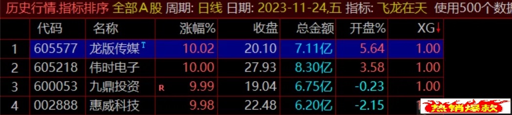 通达信精品竞价主抓2进3【飞龙在天】排序指标,票少而精!
