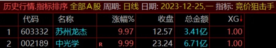 【竞价狙击手】排序指标,首板二板通吃9:25排序,出票苏州龙杰、中光学;少而精!