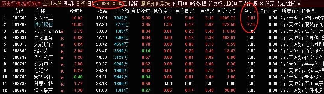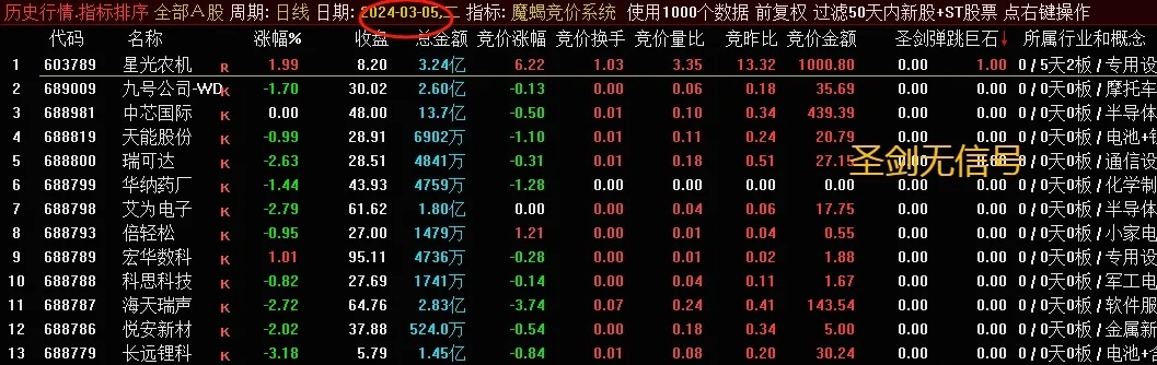 (【魔蝎竞价】通达信魔蝎竞价系统排序指标,源码分享)