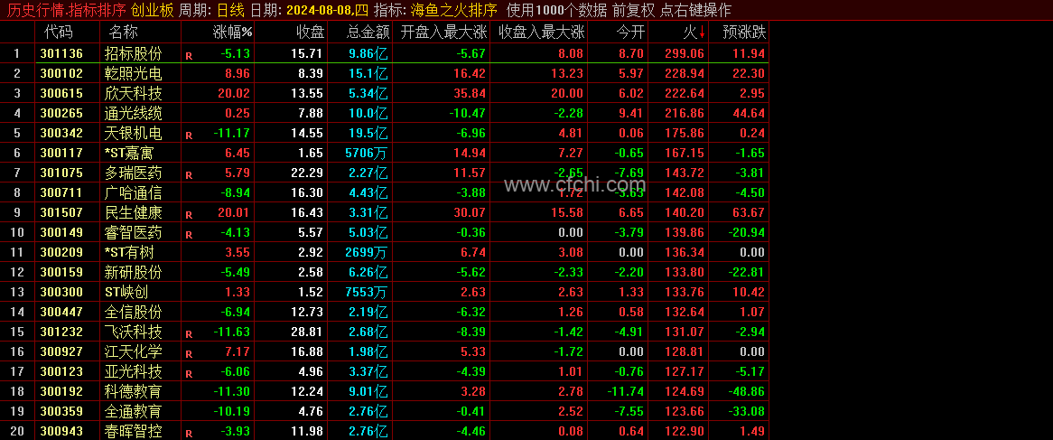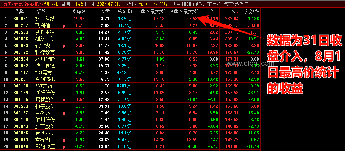 注:排序的时候 可以单独排创业板或主板,作者以创业板为主 !