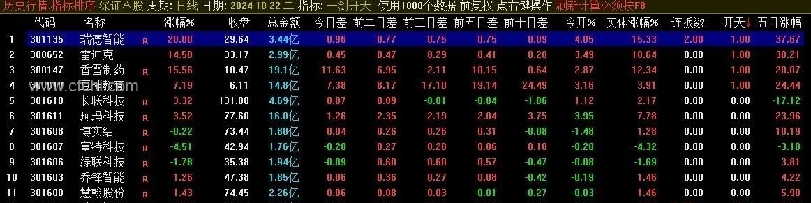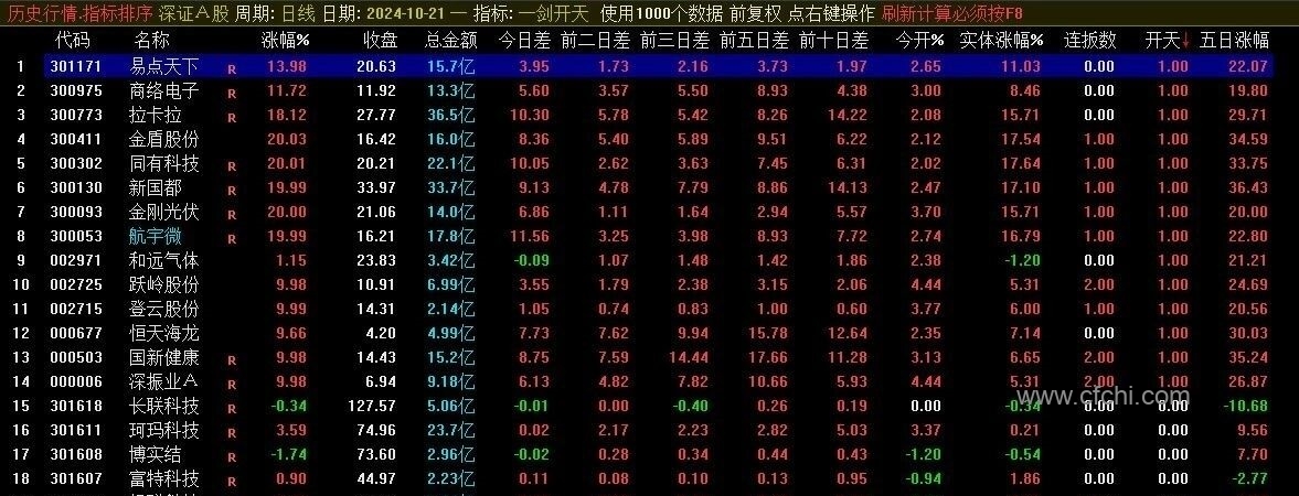 《一剑开天》通达信一剑开天排序指标,源码分享