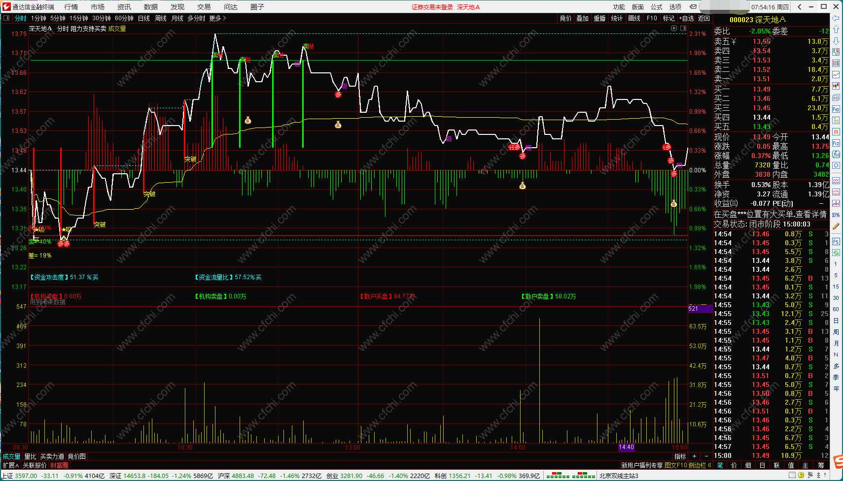资金攻击度 资金流量比 机构买盘 机构卖盘 散户买盘 散户卖盘 买卖差 吸 突破 买卖提示 多图标 钱袋图标 阻力支撑位 等等比较多的提示,