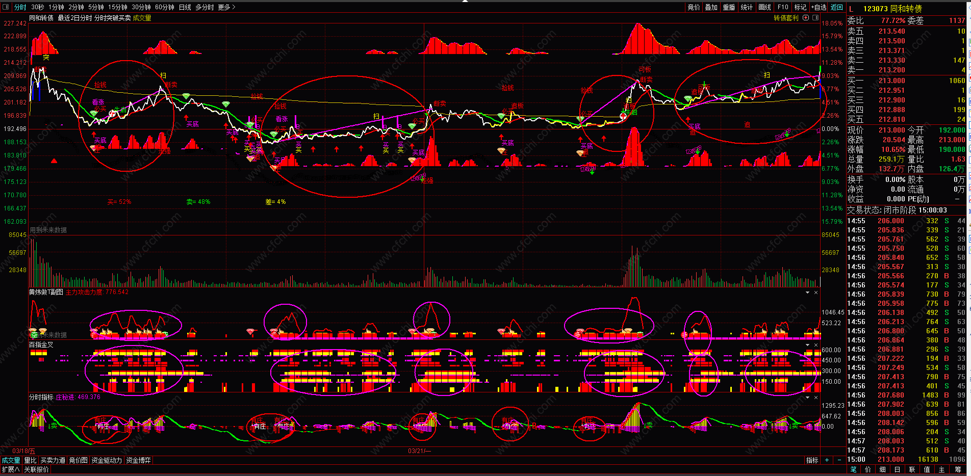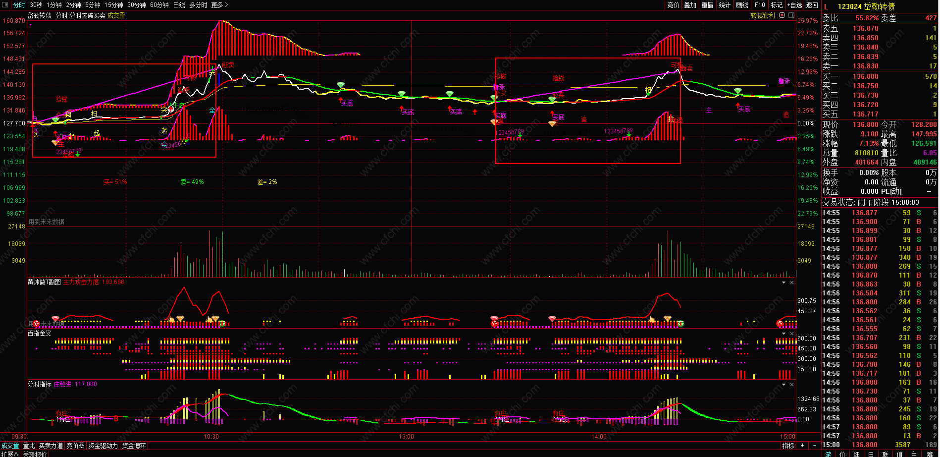(黄炜做T分时主图,T+0神器,可用于股票,可转债,期货等做T+0.)