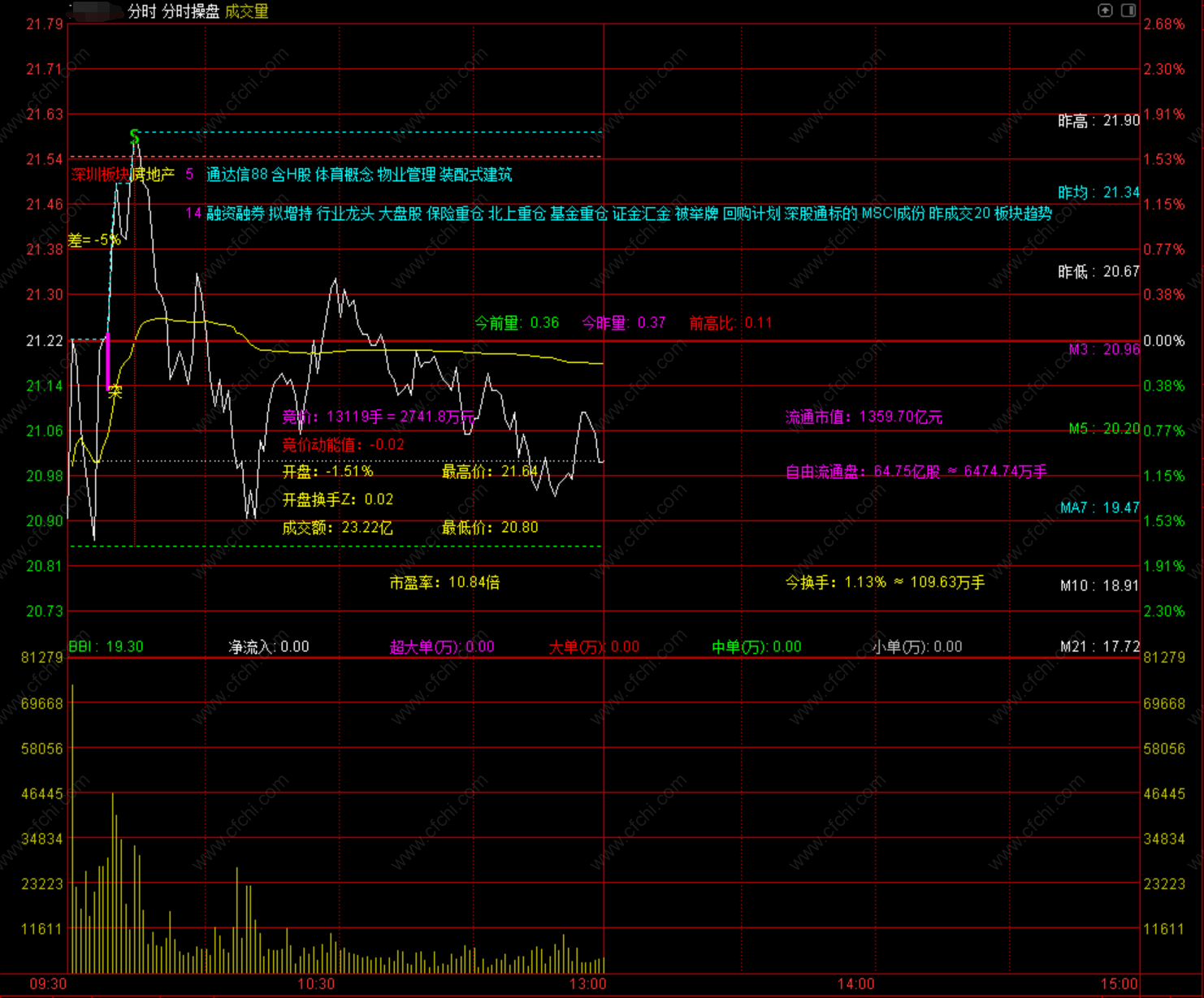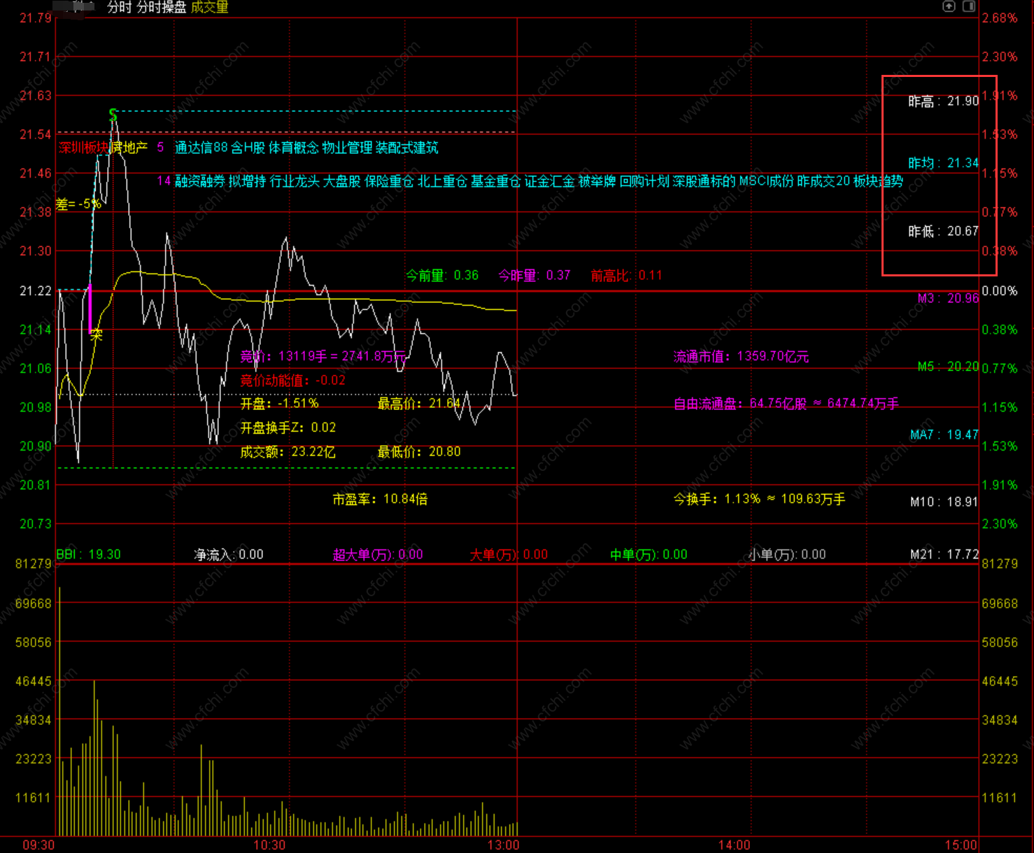 4、指标还展示了竞价相关、换手率相关、流通市值等相关信息