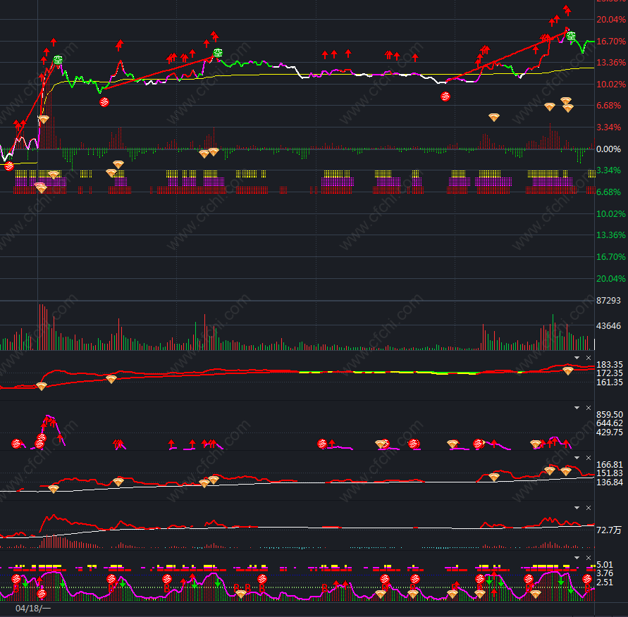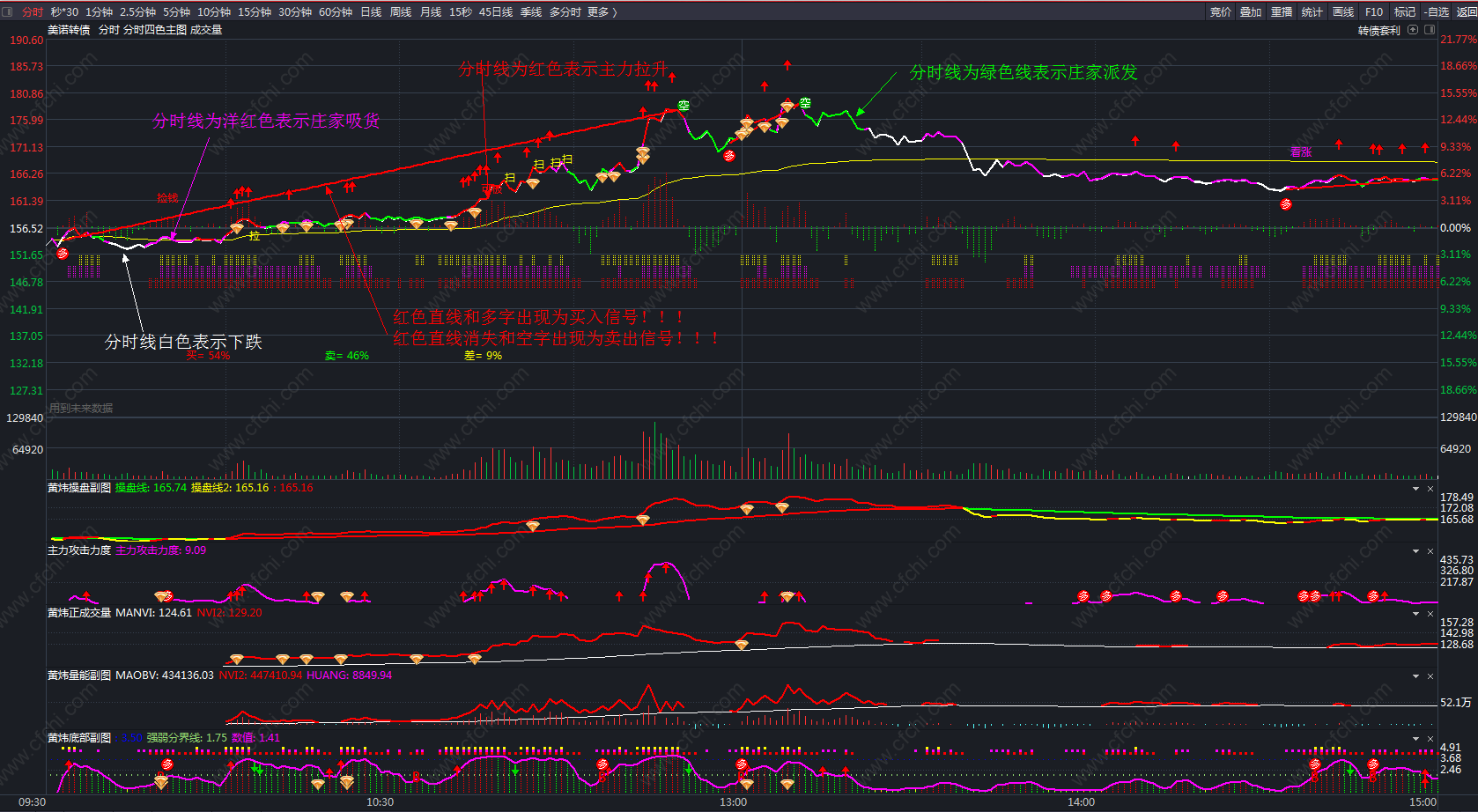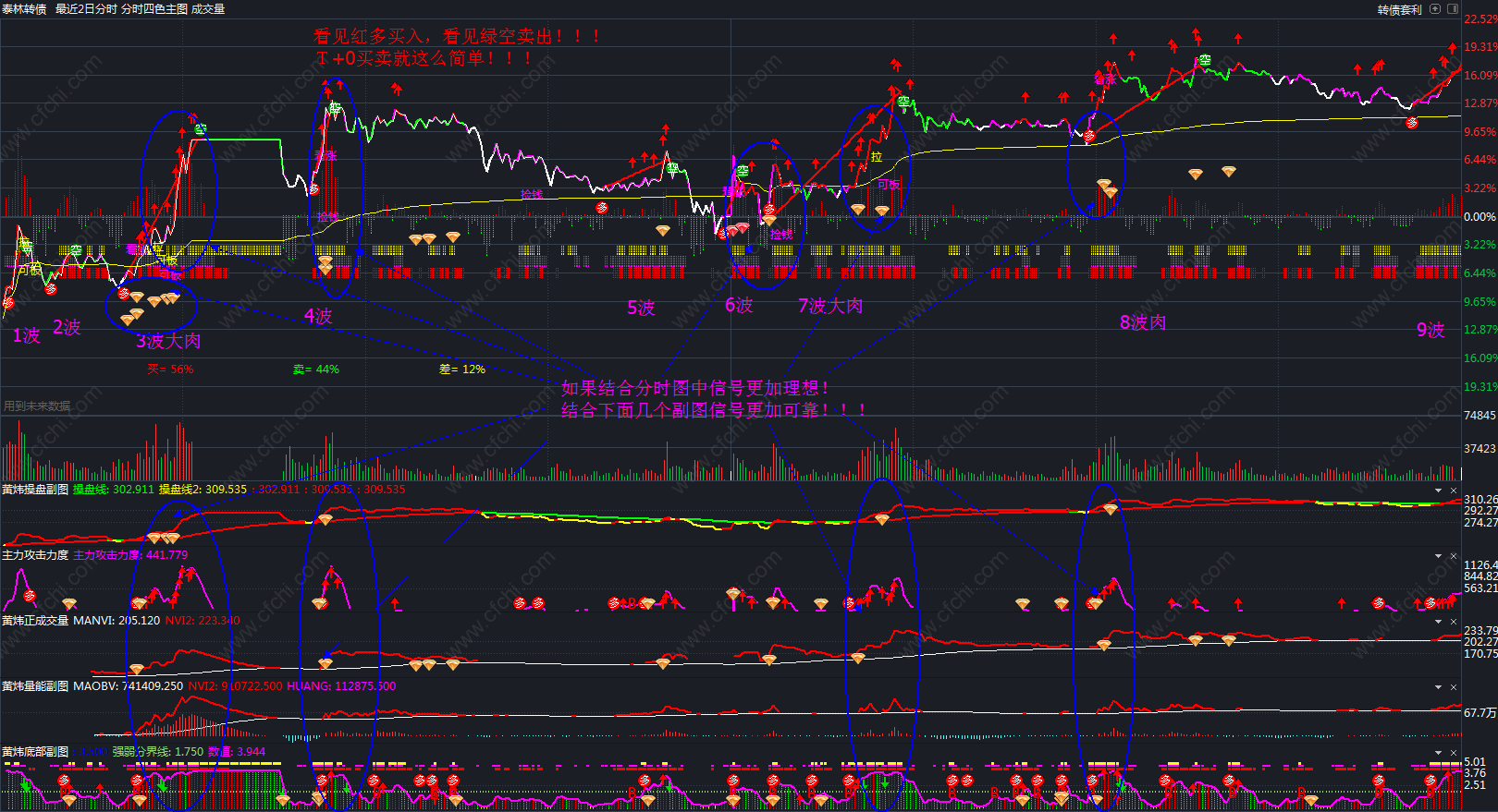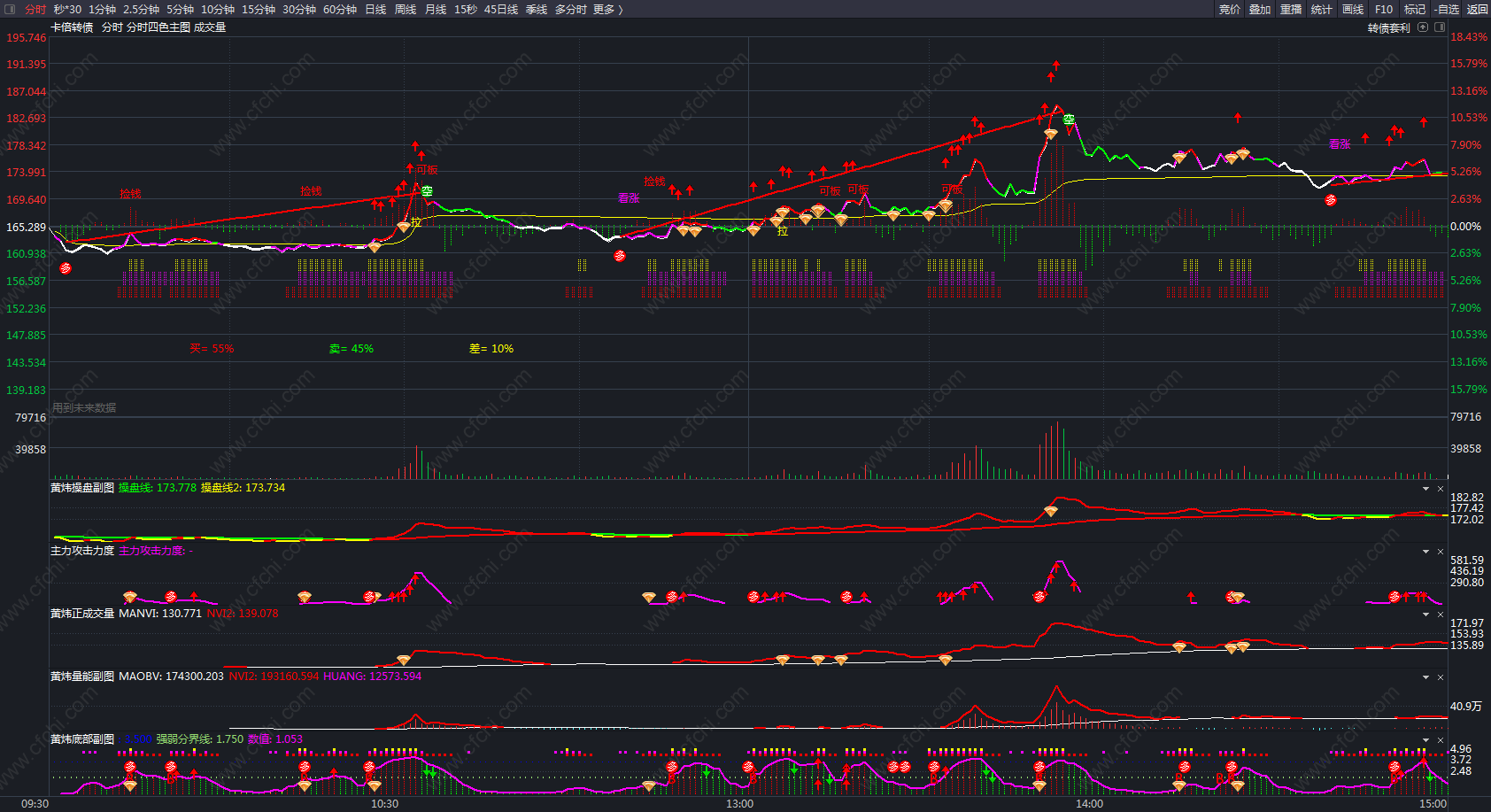 (黄炜四色分时主图1个+5个副图指标公式超值套餐,T+0神器,可用于股票,可转债,期货等做T+0。)
