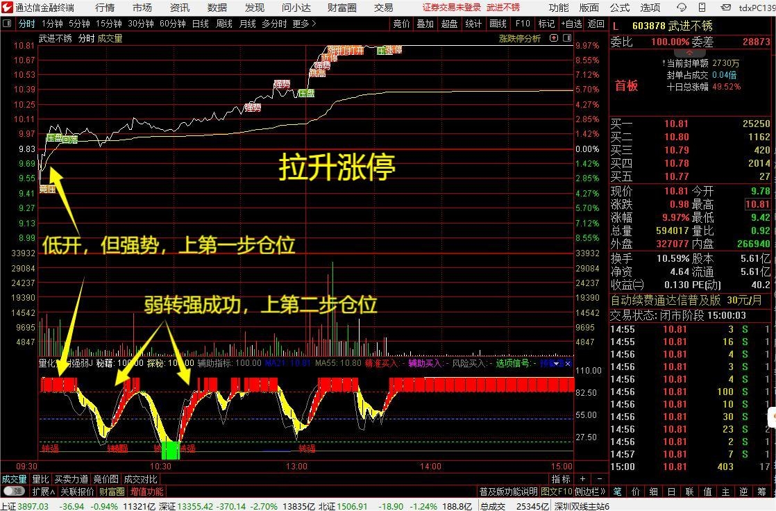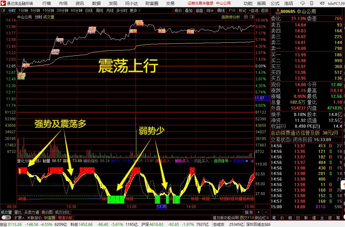 (通达信【量化分时强弱】技术指标【超精准,赢在买入点的智能分时工具】)