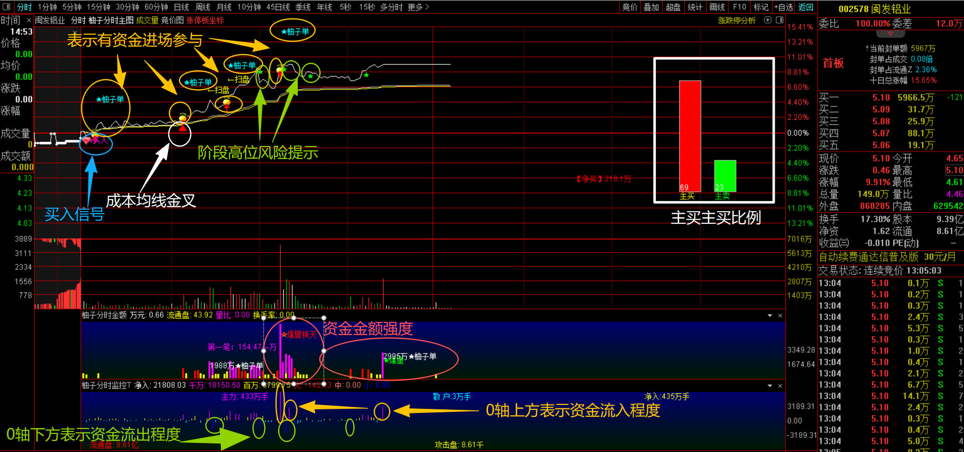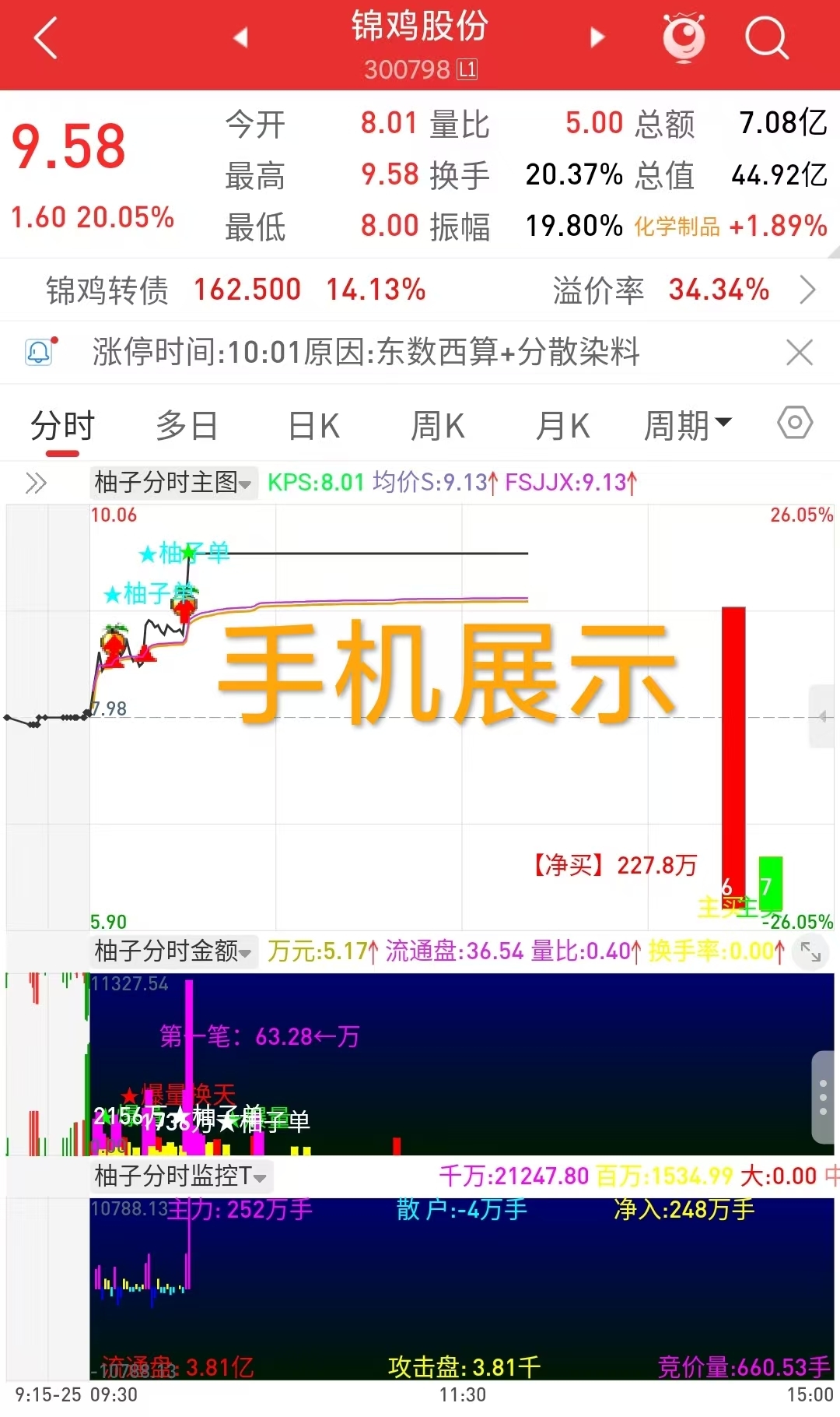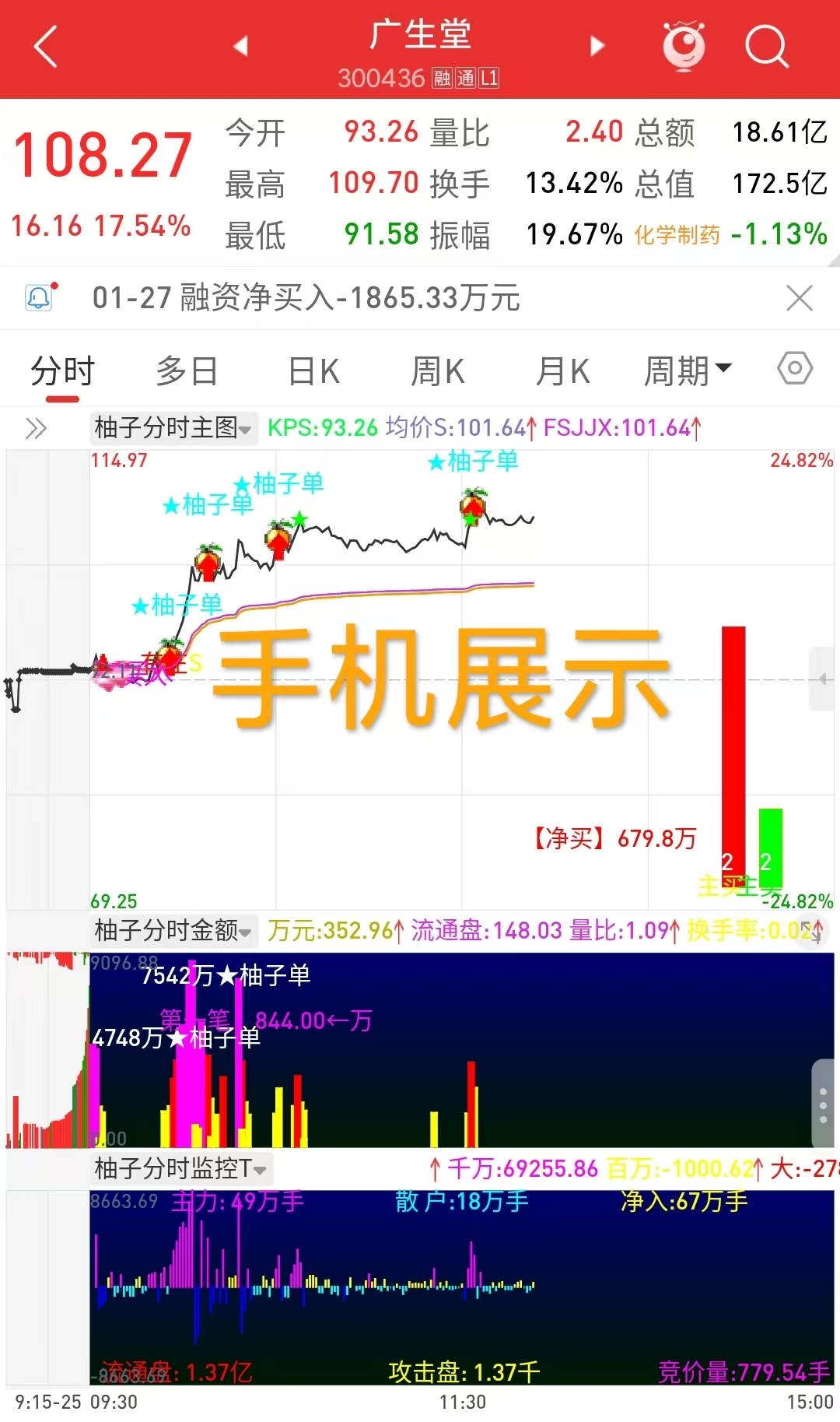 (通达信【柚子分时】精品分时套装 1分时主图+2分时副图 短线柚子资金盯盘神器、监测主力动向利器,手机电脑都通用)