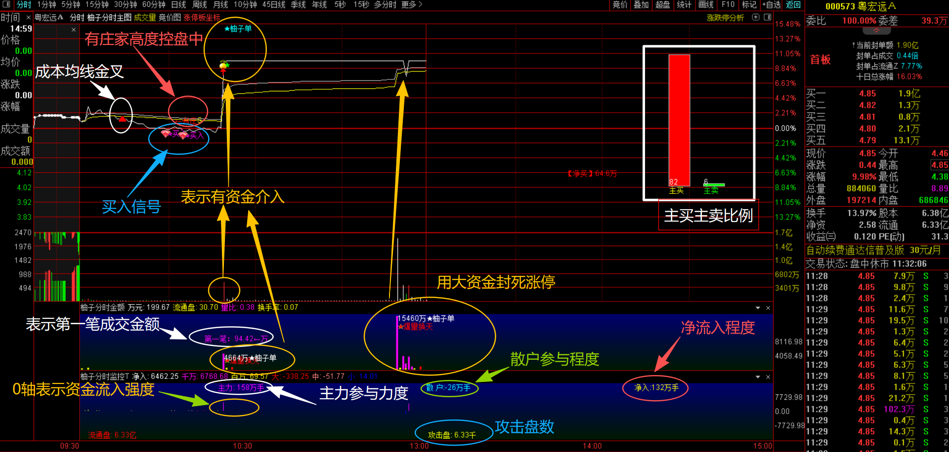 通信达【游资分时主图】指标1主图2幅图分时主图抓涨停指标