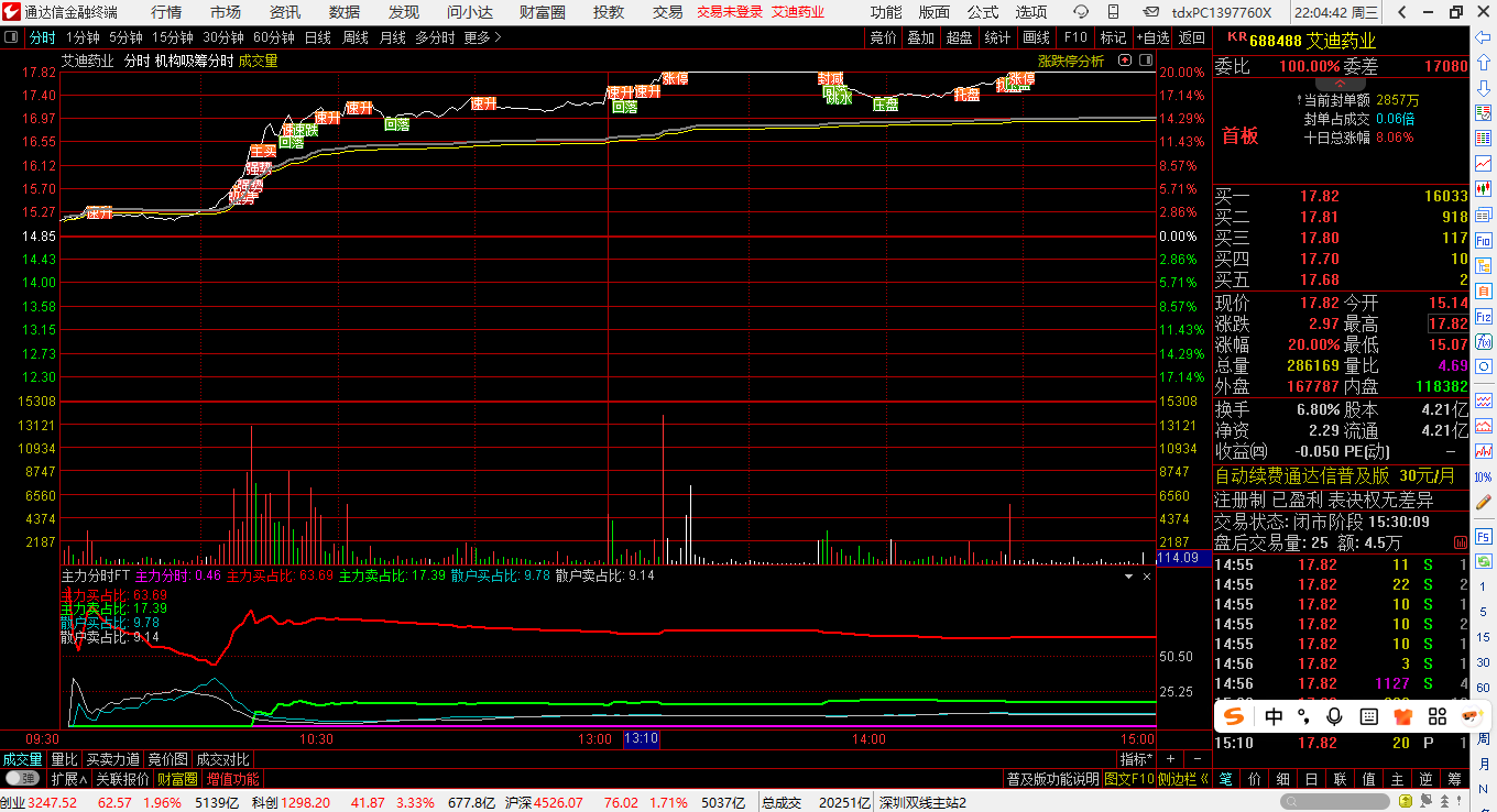 (通达信 AI主力分时副图 源码 无密 判断涨跌的AI智能工具,1副)