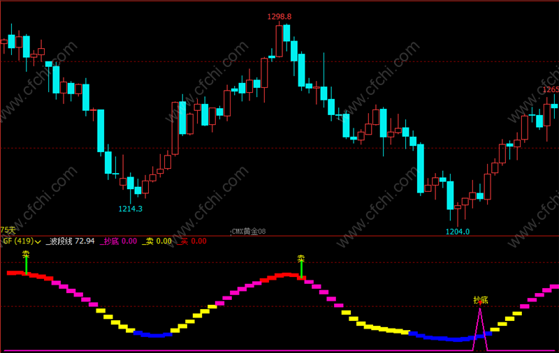 (文华财经指标公式玉龙指标公式网期货傻瓜式买卖指标波段顶底买卖)