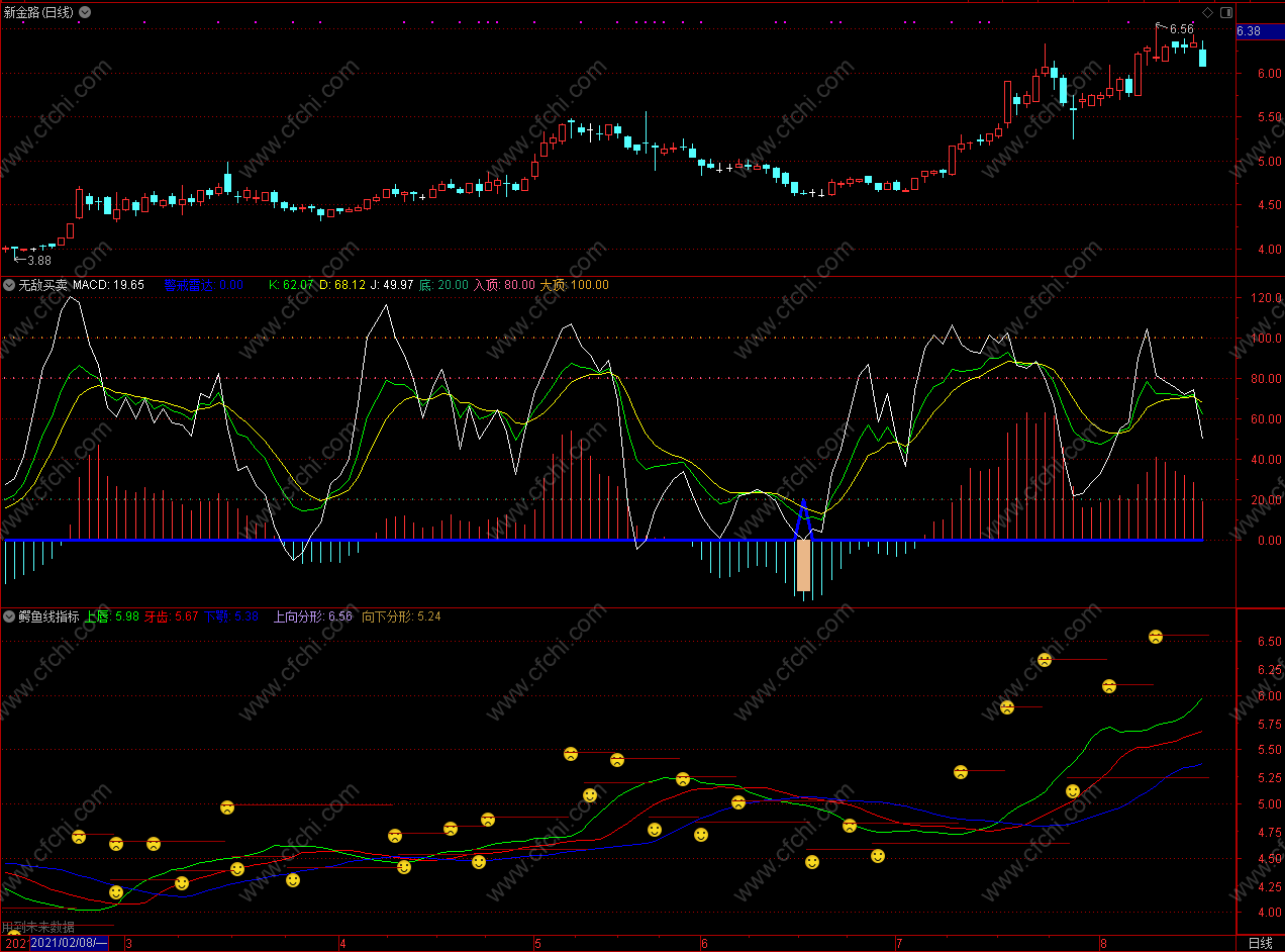混沌操作法 通达信鳄鱼线指标选股公式 副图 源码