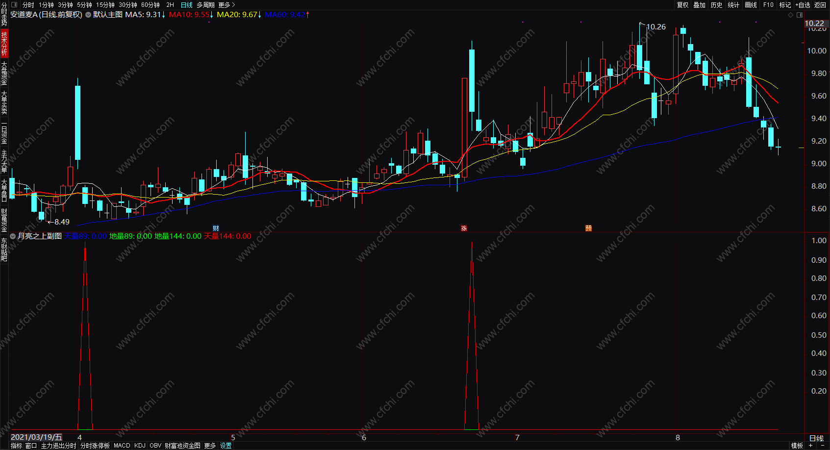 (月亮之上 简单实用的买在起涨点自用指标 通达信指标公式副图 源码 贴图)
