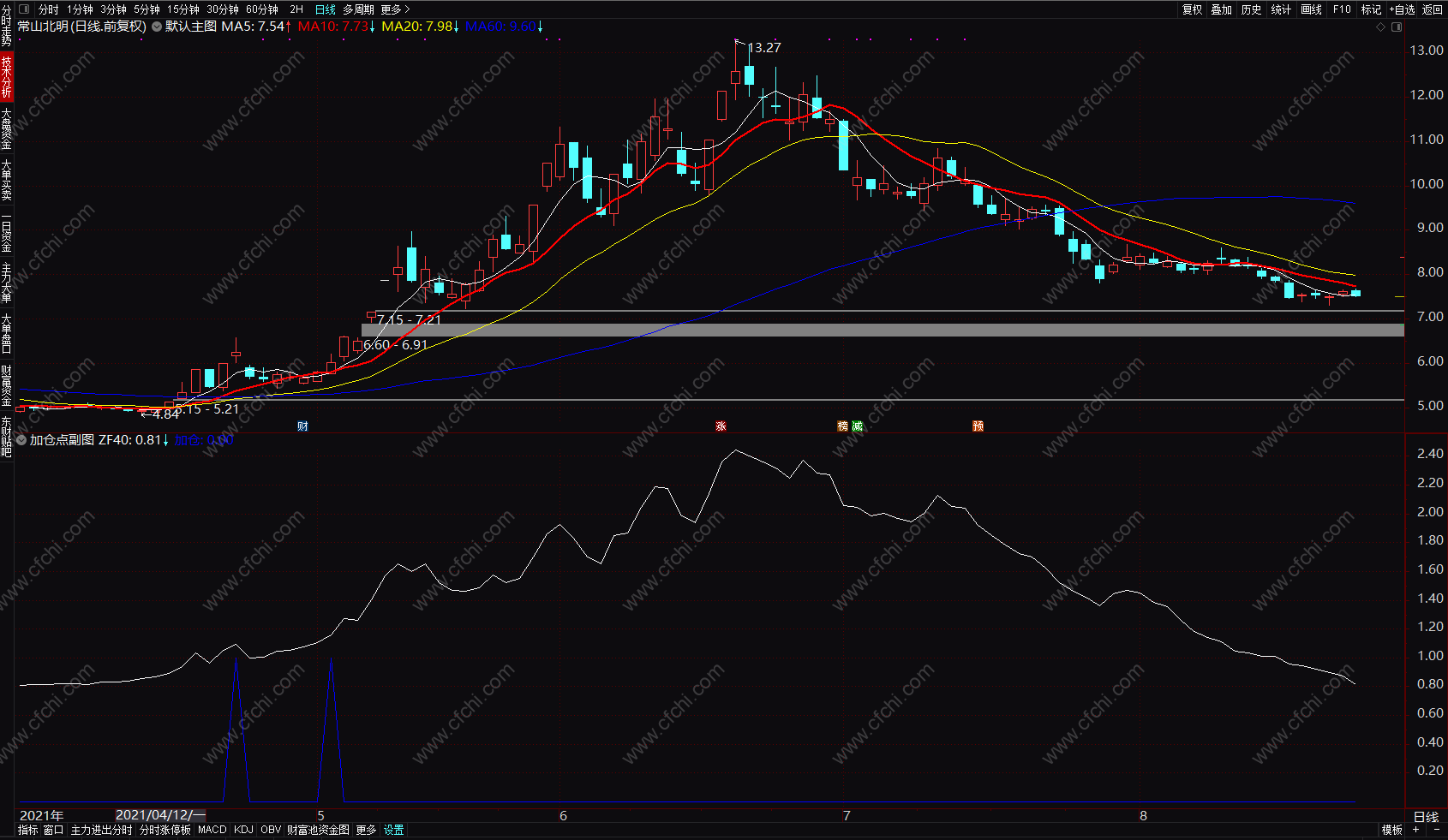 加仓点副图 中长趋势线高效加仓选股 通达信指标公式副图 源码 贴图