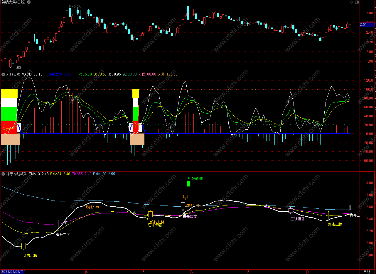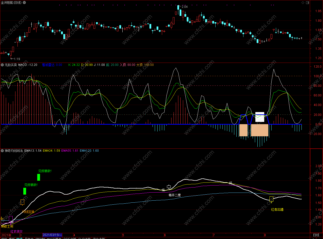 指标自带买卖点提示,指标编写原理来自“宁俊明135战法”效果见“指标图示”。