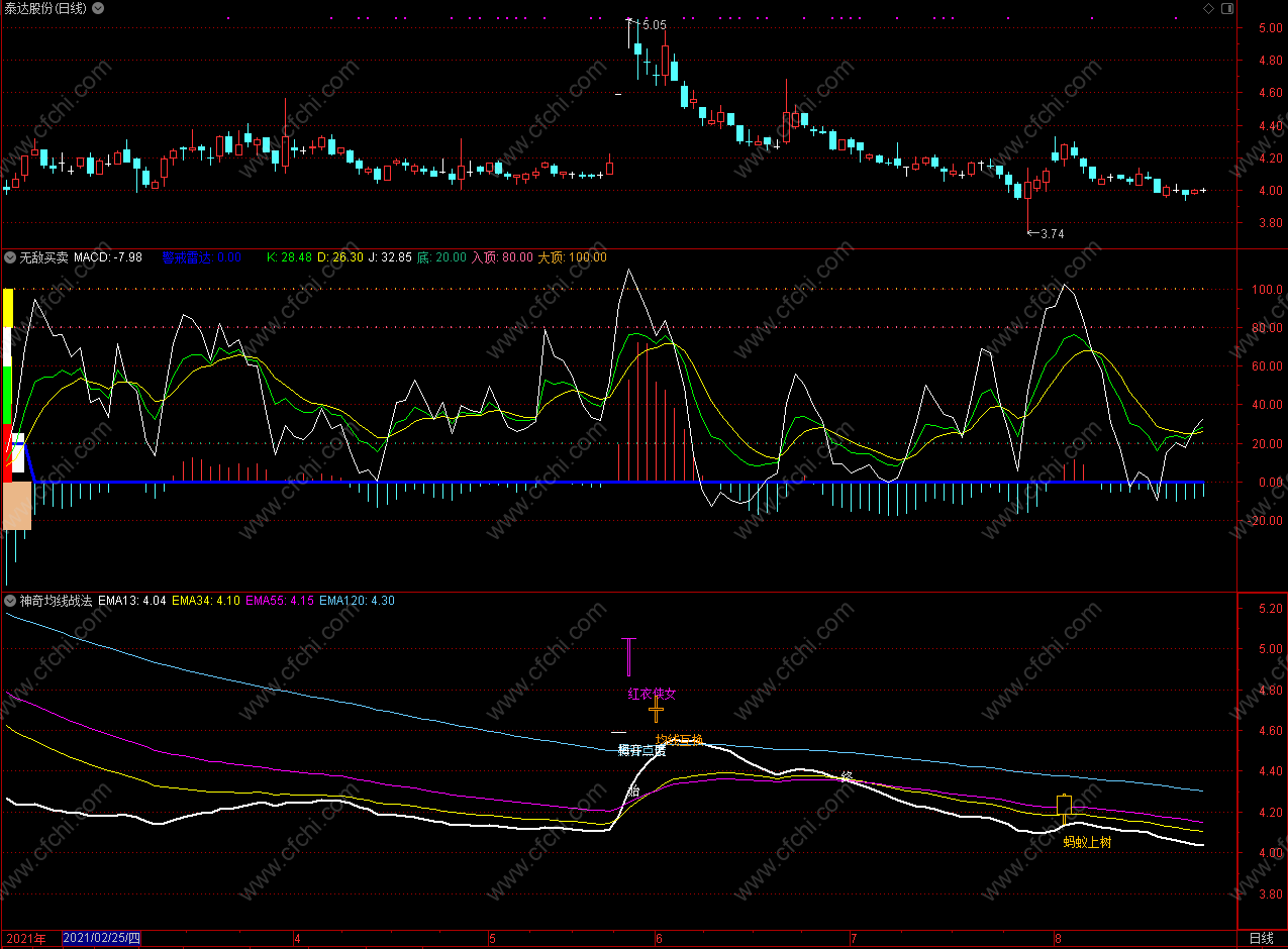 (自带买卖点 通达信神奇均线战法指标公式 副图 源码)