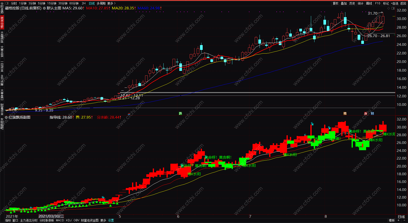 (红旗飘扬副图 红买绿卖买点指标提示指标 通达信指标公式副图 源码 贴图)