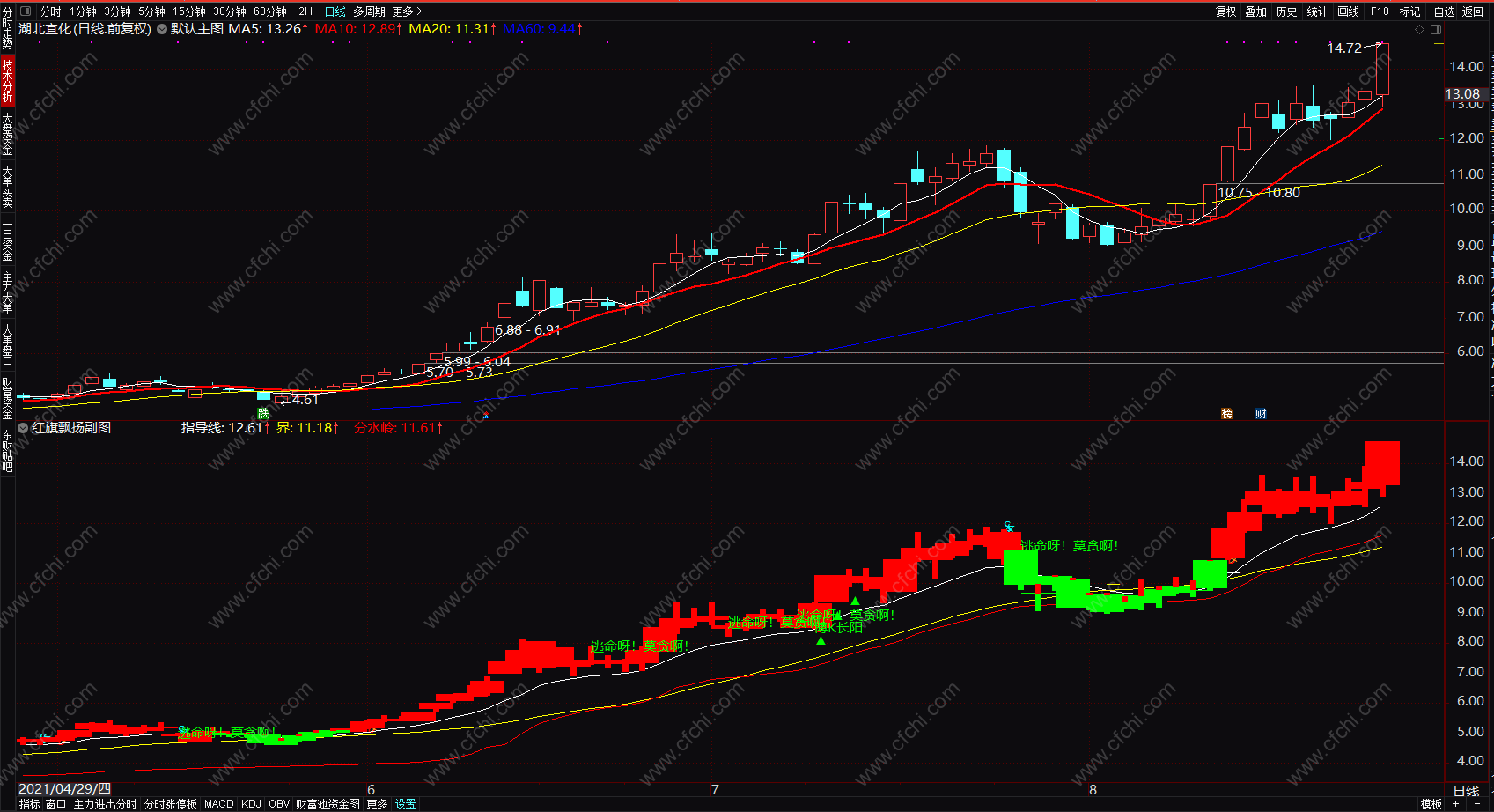 红旗飘扬副图 红买绿卖买点指标提示指标 通达信指标公式副图 源码 贴图
