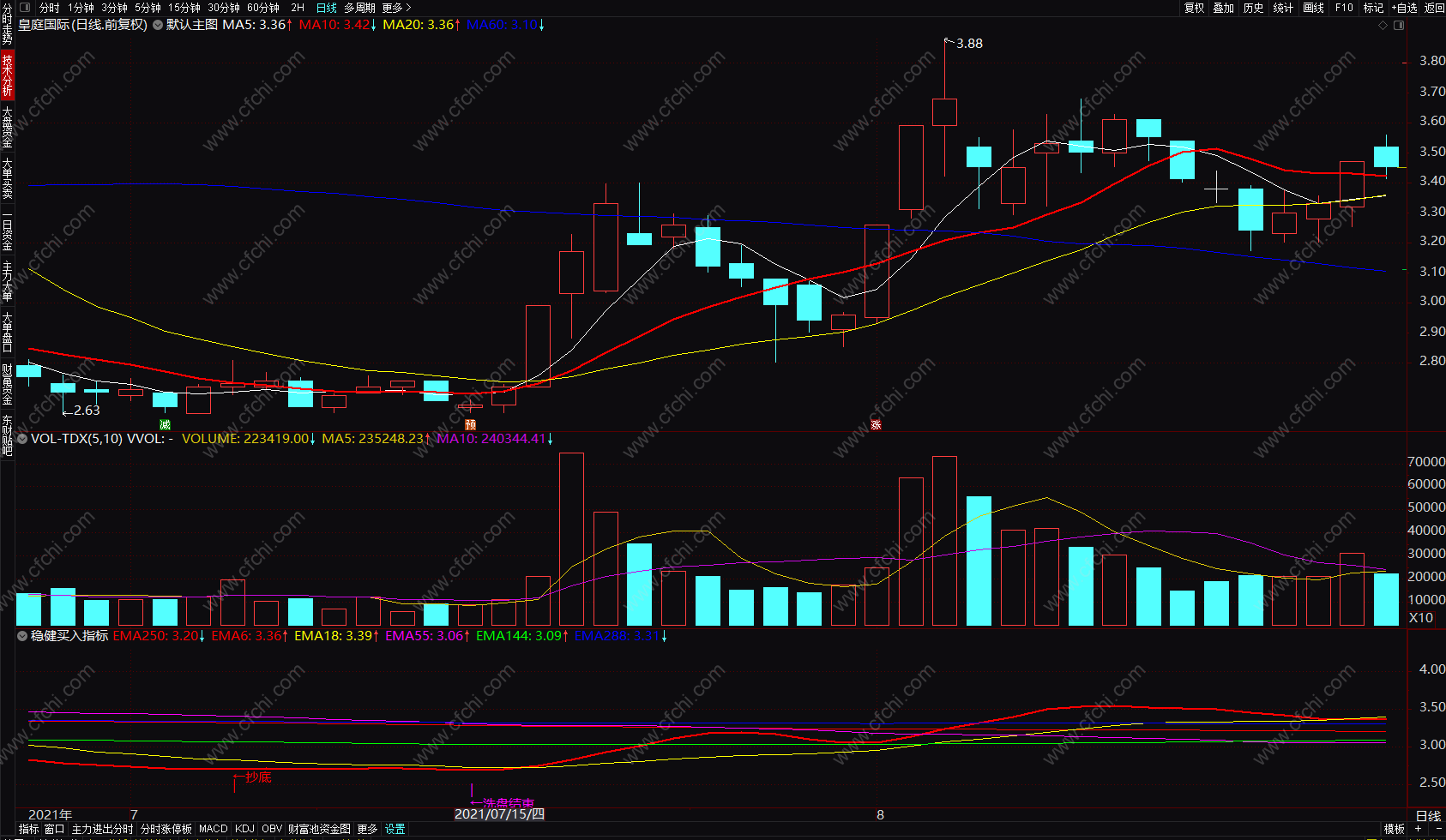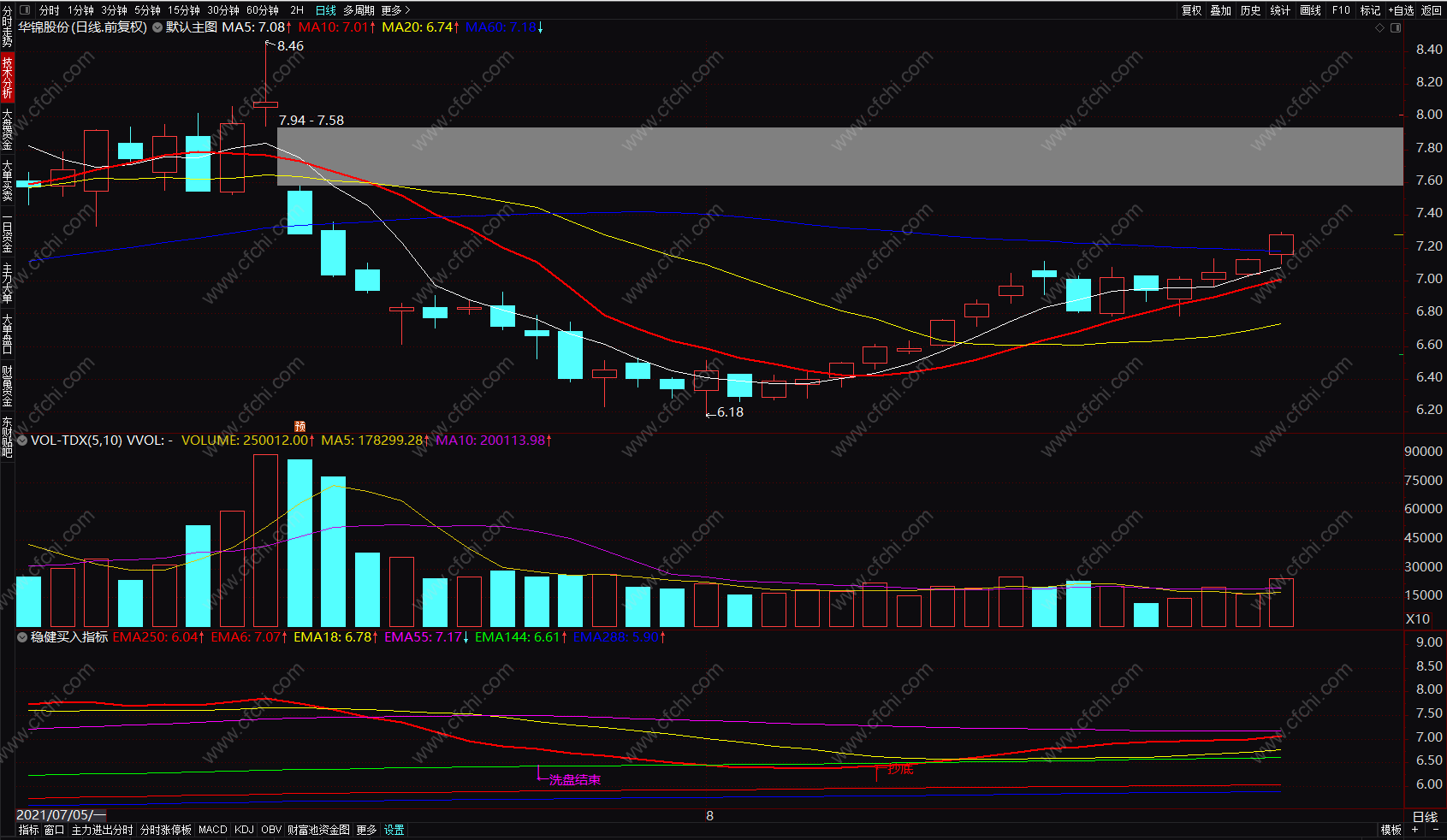 DRAWTEXT(T,LOW-0.4,'←洗盘结束'),COLORFF00FF;
