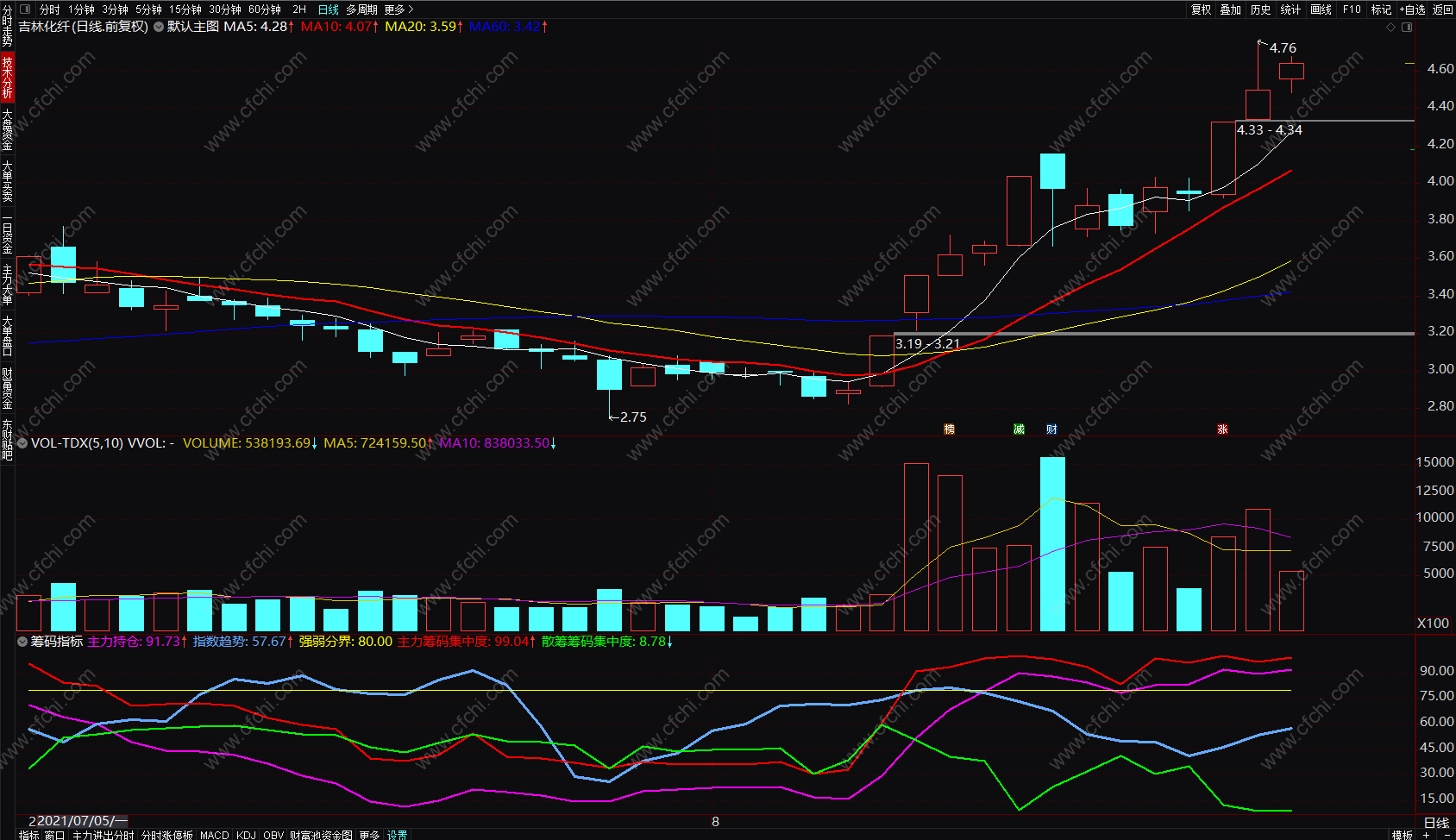 (筹码指标 筹码个股强弱分析 通达信指标公式副图 源码 贴图)