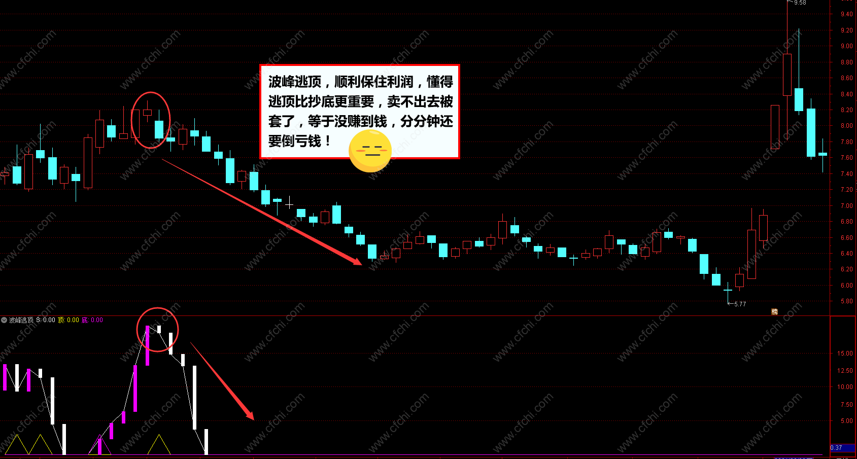 (【波峰逃顶】防追高神器瞬间逃顶通达信指标公式副图 无未来函数)