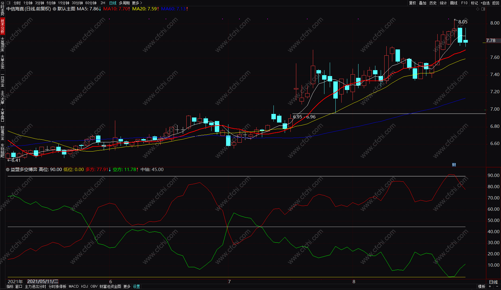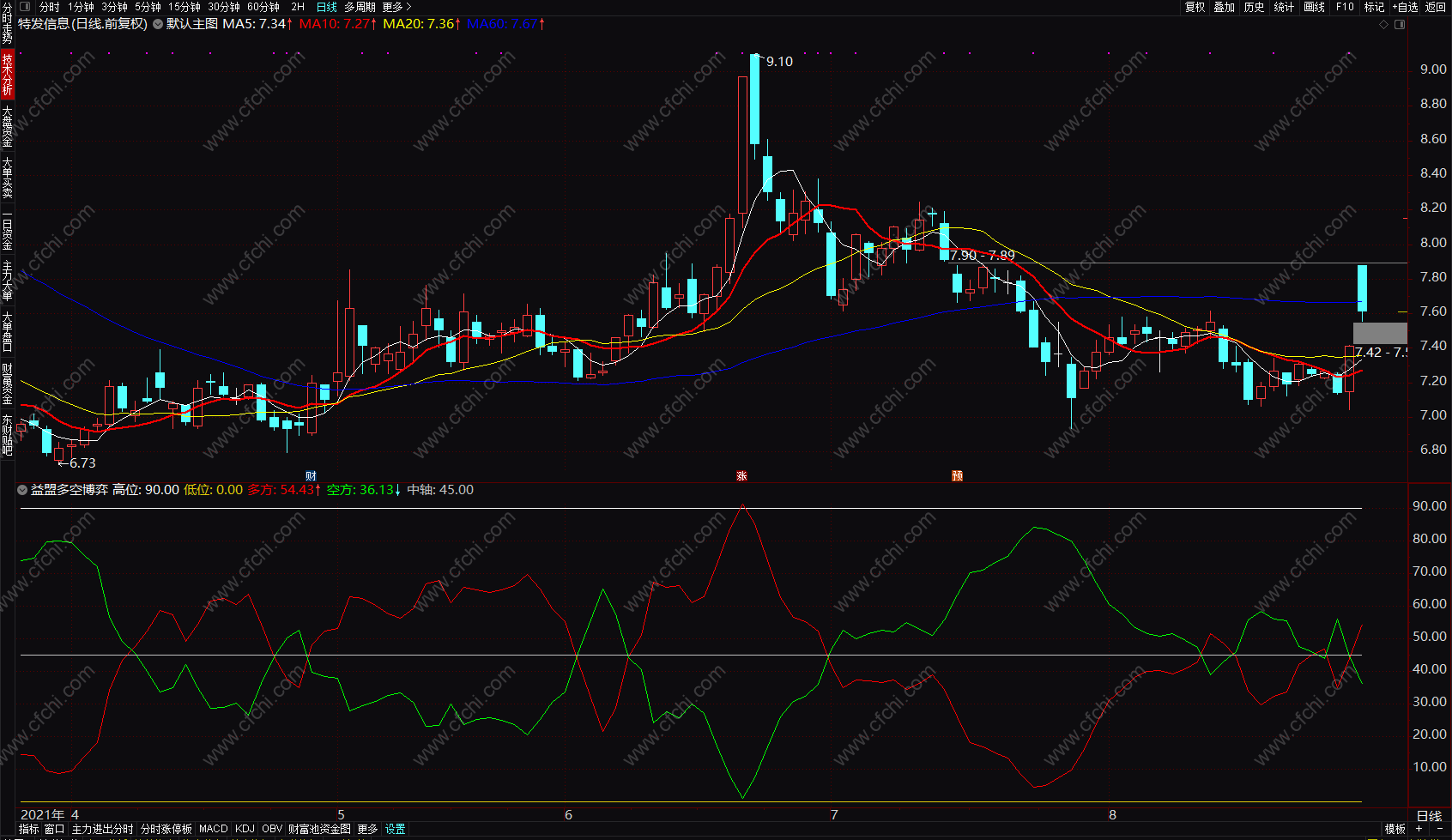 (益盟多空博弈 多空监控有机构资金进出显示指标 通达信指标公式副图 源码 贴图)