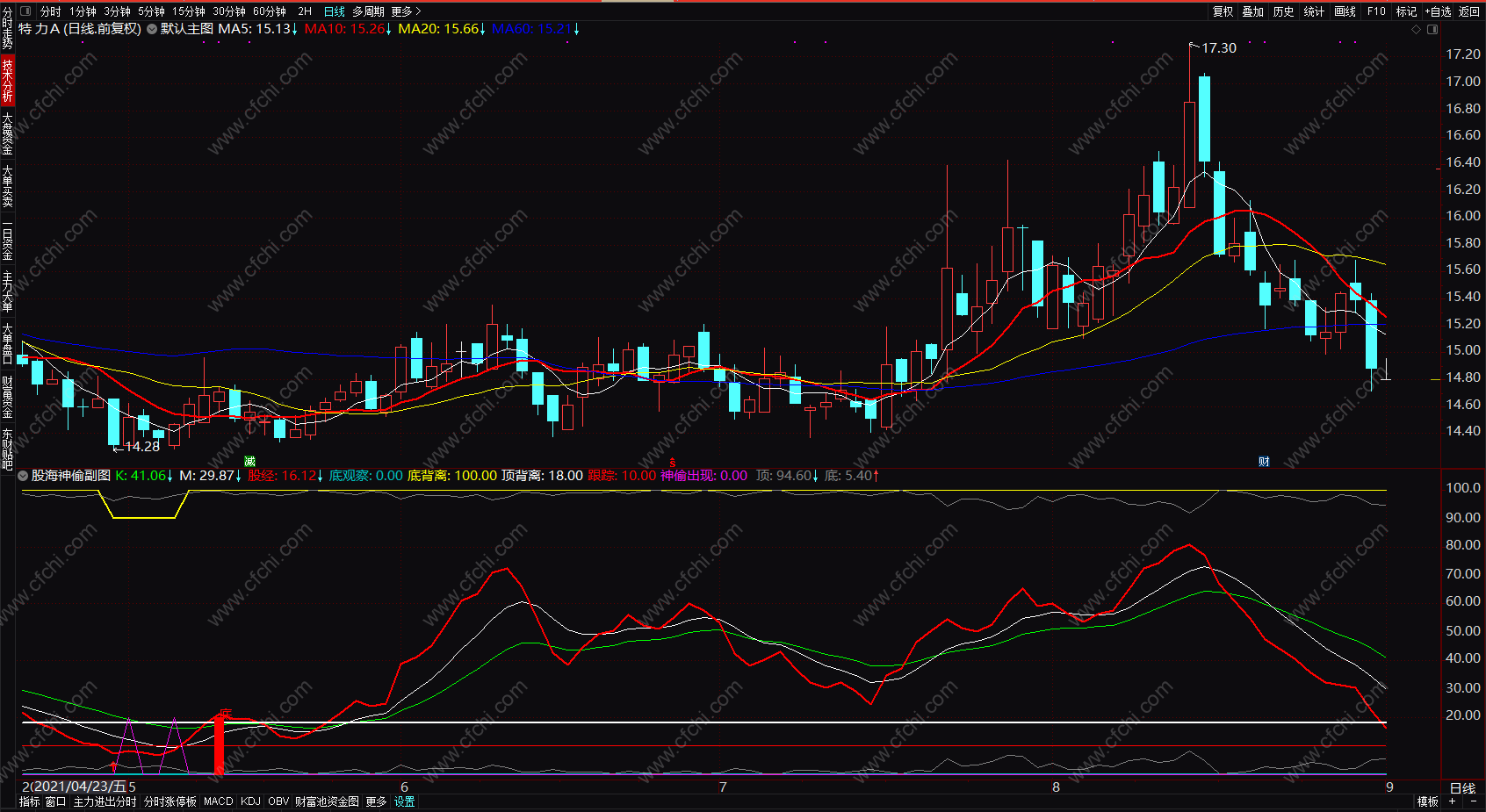 底观察:IF(MN<-4,10,0),COLORLIBLUE,LINETHICK2;