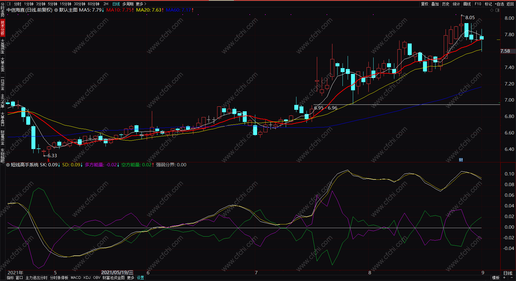 "短线高手"指标为图形化指标。本指标反映的是多空博弈游戏中多空动能、势能交替转换的基本状态,是《庄家克星》系列精华指标之一。