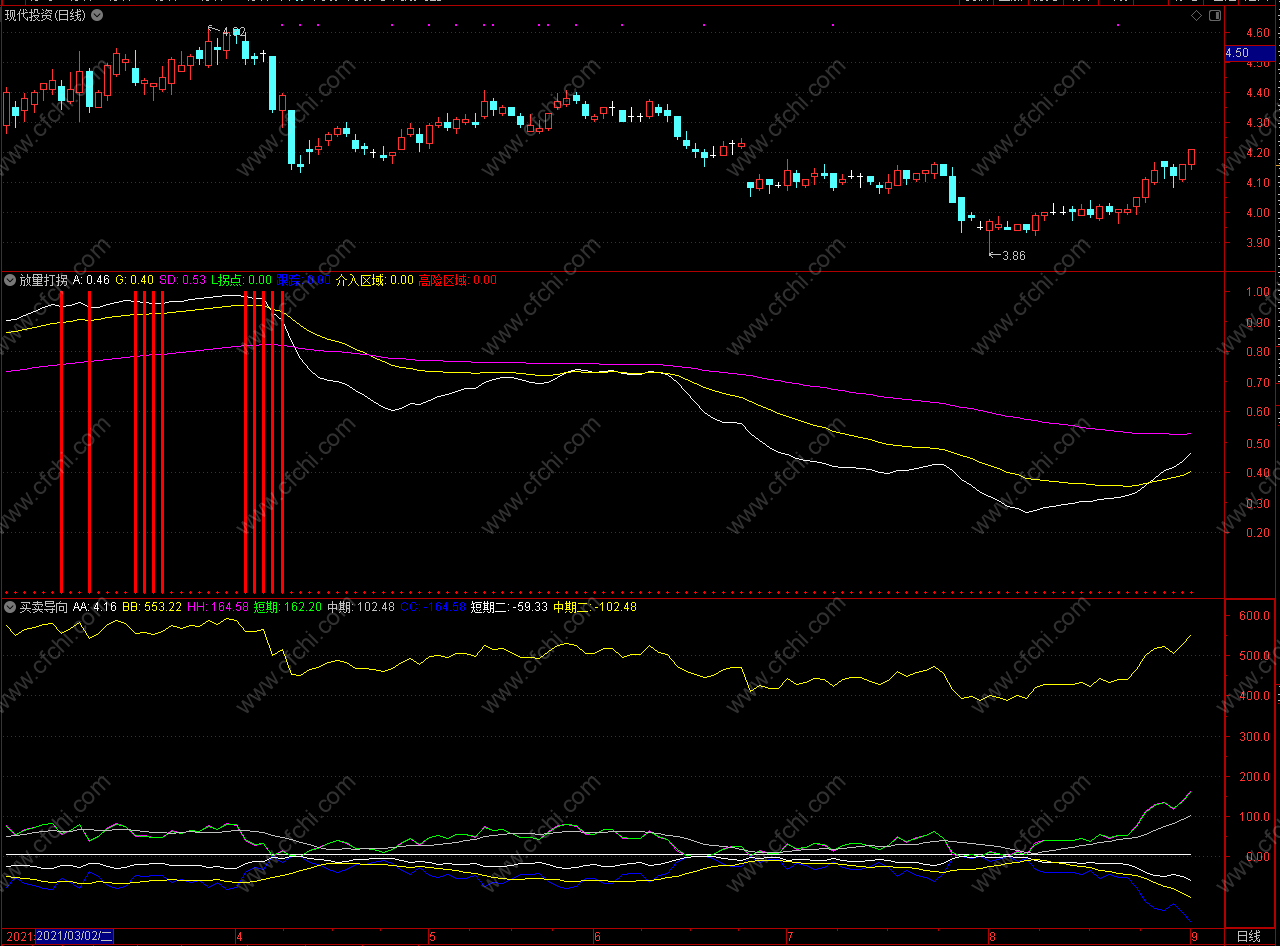 (【通达信免费源码】买卖向导指标公式 副图 无未来 贴图)