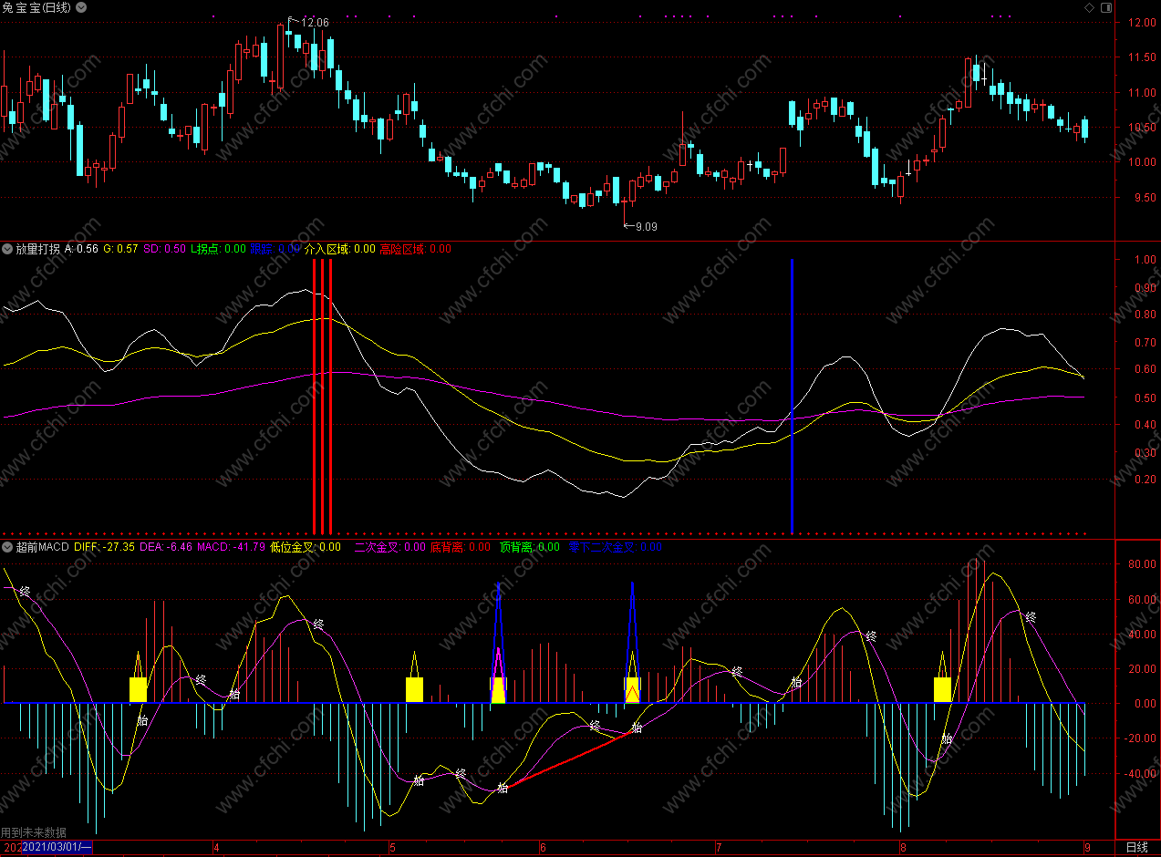 自带形态提示二次金叉背离 通达信超前MACD副图指标公式 无未来 源码